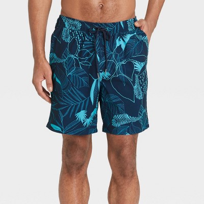Men S 7 Line Leaf Swim Trunk With Liner Goodfellow Co Blue Swim Trunks Printed Swim Mens Swim Trunks