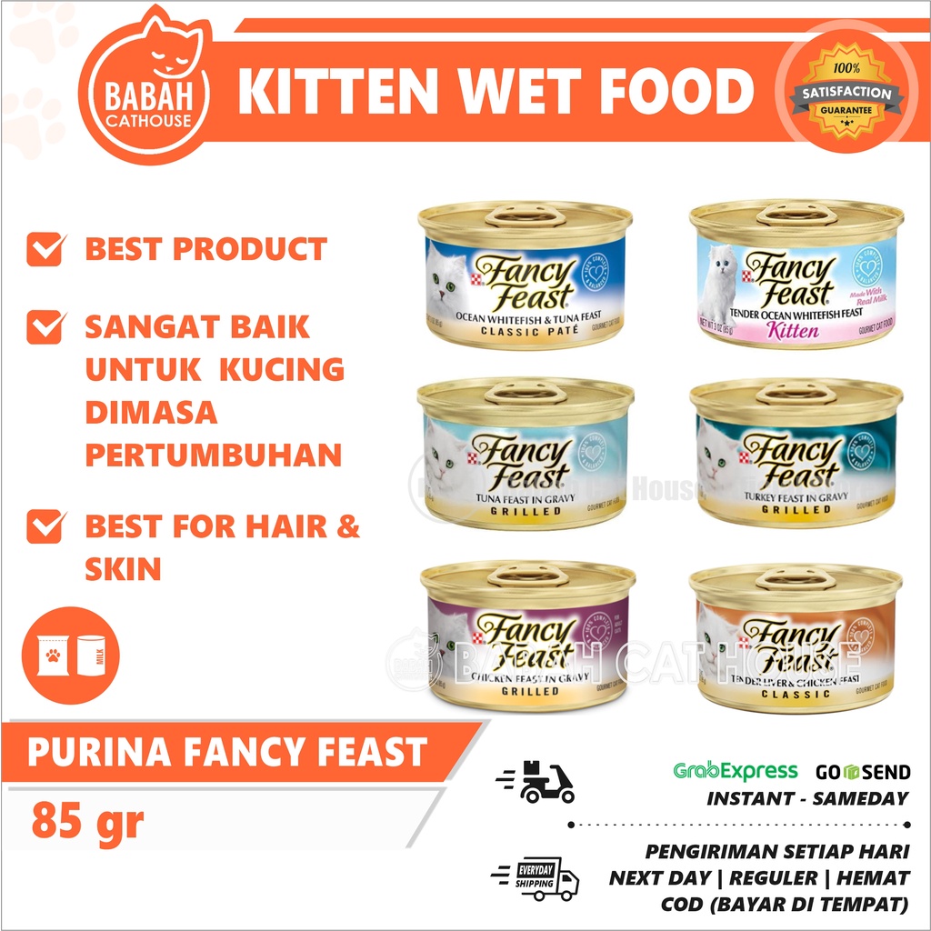 Jual Fancy Feast Can Kaleng Makanan Kucing Cat Food Basah Wet Kitten Anak Snack Cemilan Murah Adult Chicken Liver Ocean Whitefish Turkey Tuna Savory Salmon Pakan Catfood Purina Proplan Pro Plan Fancyfeast